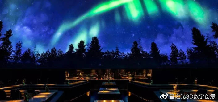 客人們一抬頭,就能看到天空中的繁星和極光,就像是站在了一片美麗而又美麗的自然風景之中。